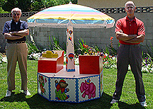 When my son was 2 years old, his grandfather built a motorized carousel for him to ride. Twenty-five years later, my son had a son and the baby's great grandfather and I decided to continue the tradition by building a new carousel. The motor and gear system were scavenged from a cement mixer. The table rotates at 4.5 rpm. The cars have battery powered consoles with steering wheels and lots of buttons that make noise when pressed. Each car also has an old-fashioned squeeze horn.