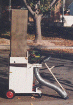 Before all that digging, I spent a month collecting leaves to improve the soil texture. This is the gizmo that enabled me to collect over 7,000 pounds of shredded leaves. It's a pull-cart with a gas-powered vacuum shredder mounted on it. In one step it vacuums, shreds, and bags the leaves. It's nine-feet tall and as you can imagine, I get quite a few odd looks from the neighbors.