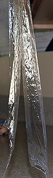 They hung as shown in the photo above for several minutes as their weight very slowly dragged them down, forcing the air between them out. Had there been any static electric attractive force they would immediately have been drawn together from the top down. Even when they both hung straight down they only clung together where they accidentally happened to touch.