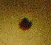 Using a combination of the zoom and macro functions on my digital camera to take a picture of a 24-hour old egg with reflected light shining through it, I was able to capture the first hint of the fry taking shape while it is still inside the egg. Look closely and you can see a faint transparent dome over the fry's head.