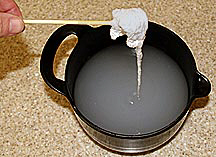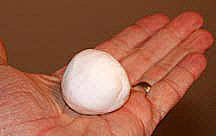 After you've drizzled as much glue into the Borax water as you want, use a swizzle stick or stirring rod to swirl the strands around in the water for a few seconds. The strands will collect on the end of the rod like cotton candy. Pull it out and remove the glob of homemade Silly Putty. Use your hands to squeeze out the water and form it into a solid ball. Use a smooth cloth like a cotton handkerchief to blot it dry (avoid paper toweling - I found the putty sticks to it too aggressively) and you're done!