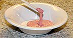 Mix one tablespoon of Borax into 4 cups of warm water in a dark bowl. You want the liquid 3 to 4-inches deep. (The warm water just helps the Borax dissolve faster. It doesn't affect the reaction. The exact amount of Borax isn't critical. Anything from half a tablespoon to two table spoons works. Using a dark-colored bowl is simply to make watching the glue enter the water easier.)