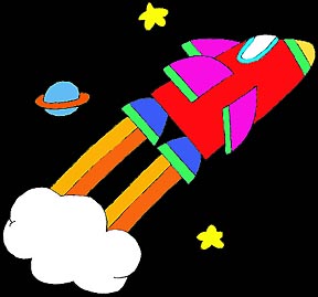 First, save the desired images in a convenient folder on your computer. Second, open one of the pictures in a photo-processing software routine such as Adobe Photoshop. Since most of these pictures are saved as black-and-white images to reduce bandwidth, click on the "image" menu and under it click on "mode" and finally click on "RGB color." This will convert the image from black and white to color. (These instructions are for Adobe Photoshop. Other programs may have different menus and buttons but the process should be the same.) After that simply select a color and use the "paint bucket" tool to instantly fill any part of the drawing. Best of all is coloring the empty space around the space ship with solid black so that it really looks like it's a scene in space. The color picture at the top of this page was made using this technique. It only takes a few minutes at most. Joshua actually enjoys computer coloring more than using crayons. Even though he is only five, he quickly mastered the few steps required to select a color and fill in the drawing with colors. The resulting color picture can be printed and if glossy paper is used the result can be quite attractive.