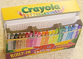 A strip of white paper taped on the front of the box has a sample of the color each crayon makes. This helps keeps them in order. I was concerned that a young child, 5-years old in Joshua's case, would forget to put them back in the right place. To my surprise he quickly grasped the value of doing so and made very few mistakes.