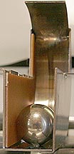 By bending it up or down a little the shield can be adjusted so that the player views it edge-on, making it virtually invisible. It completely blocks light from the DMD from reflecting off the coverglass. Total cost: 35-cents.