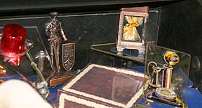 While I didn't like the safe's position over the vault because it blocked a player's view of the skill shot, I hated not having the safe somewhere in the game. I found that it fits very nicely on the triangular playfield plastic behind Thing's box. I placed it there and then got the idea of using metallic gold cloth and metallic gold braid to make a tiny sack of gold to place inside the vault. It turned out better than I had imagined.
