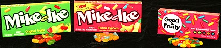 The Kellogg people have started marketing four new treats based on enlarged versions of their cereals: Rice Crispies, Sugar Pops, Cinnamon Loops, and Fruit Loops. After testing all them we voted that the Rice Krispie and Sugar Pops treats were just so-so, and the Cinnamon Loops were good but have a greasy taste that builds up after eating ten of them. The Fruit Loops were outstanding. They had a great crunchy texture, bright colors, fruity taste and best of all really looked like a ten-times enlargement of the cereal. Another thing to do with them is to string them for rustic christmass tree garlands.
