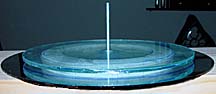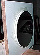 The first step was to cut an 8-inch diameter circle out of the mirror material and mount a puller plate on the rear. The puller plate was double thickness glass with a hole drilled in the center. It was attached to the back side of the mirror using double faced mounting tape. The tape was cut so that it formed a ring 1 inch across with an inside diameter of 4 inches and an outside diameter of 6 inches. A 6x32 bolt was fed through the hole in the puller plate before the plate was attached to the mirror.