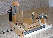 Ten years after I thought I'd made my last mirror I came up with a different way to make them. The problem was that I'd long since thrown away my Foucault tester. Impatience to have one right away and a reluctance to spend money to purchase one drove he into the garage to see if I could widget one together from bits and pieces I had on hand. Two hours later I'd accomplished two things: made a Foucault tester for free and completely trashed the kitchen I built it in. Here's what the tester looks like, I leave it to your imagination to picture the kitchen: