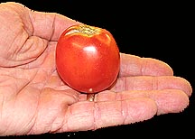 No, I didn't forget the fruit... there weren't any. Although the plant was a healthy, vigorous grower and tomato plants on either side of it produced fruit not one single flower of the many dozens this plant set produced a tomato. The flowers behaved normaly but after closing instead of starting a tiny tomato they just fell off the stem. I'm sure someone gets tomatoes off this variety but I didn't so I can't recommend it.