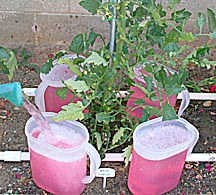 I admit to being obsessive about making sure that each plant gets its share of fertilizer. I used to control this by building earth berms around each plant to hold the fertilizer solution in. The problems with this technique are that the distribution within the berm isn't always even and maintaining the berms is a hassle.