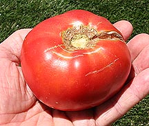 A pure red tomato with solid flesh and a deep, rich, hearty flavor similar if not identical to Beefmaster. Cracks less than Beefmaster making it the preferred choice.