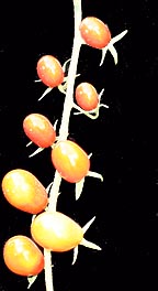 very acidic, unsweet flavor, and Black Pearl, a tomato whose dark