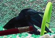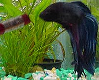 One of the great pleasures in having a website is receiving email from people who've visited it and have something surprising to contribute. A case in point are the following letters I received from Robin Anderson about her efforts to train her betta, Banner, to swim through a plastic hoop on commend. Robin is an animal trainer so she's well qualified to attempt this. With her permission, I've copied and pasted excerpts from her letters about her progress onto this page. I'm sure you'll find them interesting. There are pictures of Banner doing his trick at the bottom of this page.