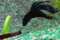 My name is Brittany Stoker and I'm a betta breeder. I read about teaching bettas tricks. I had often wondered about it and decided to try it. I succeded! The trick was for the betta to go to the side of the tank and pull a string attached to a bell being held up on the wall of the tank by a hook-like structure. To start, I picked my brightest fish, Red (cambodian double tail.) I tied a small blue ball to the end of the string. I dipped it in, get this&ldots; chcken broth! it's his favorite. I didn't put too much because it dirties the tank and too much of anything is not good for you. I the lowered the string into the water and lured him to it. When he bit it and pulled the bell rang. I rewarded him with a few blood worms. I tried twice a week for half a month. I then omitted the chicken broth. Around feeding time I put the string in. Impulsively, he pulled it so I fed him. Soon enough I could just leave the string in and at feeding time he would ring the bell.