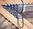 All that's needed to do now is continue weaving loops down through the warps until the triangle is full. Before getting that far there's something I wanted to try.