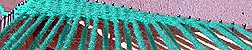 I didn't do this on my test piece but it's easy. Take a length of yarn twice as long as the desired fringe. Double it over, use a crochet hook to pull the fringe's loop through a side loop and use the hook again to pull the fringe's lose tails through the fringe's own loop. Pull the ends to tighten. Repeat this to all of the loops on the two side edges of the piece.