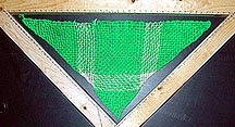 Eventually, from bits and pieces picked up from different sources and a little creative thinking, I got an inkling of how to build a triangle loom and weave on it. This page chronicles my stumbling progress as I learned to weave on a triangle loom. I'm posting it to help newcomers like myself learn to weave and by showing my mistakes how they can be avoided. I strongly recommend anyone seriously interested in triangle weaving to purchase a professionally written book on the subject available from many weaving supply sites.
