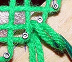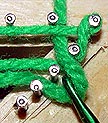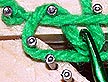 Note that as with a triangle loom, the last loop is unsecured. The easiest way to lock it down is to pull the loose end of the last loop through the work and tie it off to the previous loop.