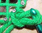 I quickly discovered the hazards using this technique: I never want to rub my eyes and it gave the chocolate I enjoyed snacking on while I worked an odd flavor. Also, the crochet needle gets hard to handle because it's slippery with soap. If someone wants to try the GOOP technique, instead of purchasing GOOP (two dollars for 14 ounces) go to a Wal-Mart store and look for Gojo soap in the automotive department. It's only 86 cents for 18 ounces. One 18 ounce container should be enough to coat two skeins.