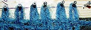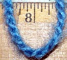 (After writing this page I was fortunate enough to communicate with Joanne Ambrus of the Yahoo Triloom Group and she explained that mohair is so tangly it isn't recommended for a first project. She mentioned that some people have had good luck reducing tangles by spraying the yarn with silicone lubricant. Next time I had to start a new skein I saturated it with the silicone spray. The yarn wove easily without tangling. Considering it's much faster and easier to apply the silicone spray is a much better option than soap. Joanne spent a lot of time proofing this page for me and I'm deeply indebted to her. In addition to correcting my terminology and spelling, she also offered many excellent suggestions, which are shown in blue print. Thanks Joanne! )