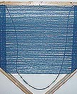 One thing that's obvious is that the weave on my test piece is far two open. The yarn I used was 1/16 inch in diameter, tight, smooth and twisted (worsted) so it didn't fluff up during the wash/dry treatment. The nails on the top rail were were spaced 1/2 inch apart. What I learned from this is that the nails need to be spaced apart no more than four times the diameter of the yarn. In my case they should have been 1/4 inches apart on the top rail and around 1/8 inches apart on the sides. This spacing is so close it might be difficult to work with. This four-times-the-yarn-diameter spacing only applies for a tight weave using non-fluffing yarn. If the yarn puffs up during washing a wider spacing can be used. Also, some shawls are supposed to have an open, airy weave. They would also have wider nail spacing.