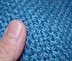 The finished cloth from the frame with the 1/4-inch nail spacing on the top rail (above left) was solid, smooth and only shrunk five percent. Compare it to the first sample (above right) woven with the 1/2-inch nail spacing. Having the top rail nails spaced four times the diameter of the yarn, as they were on the left, seems to work out right.