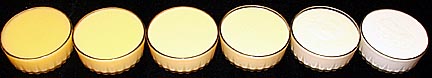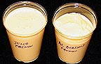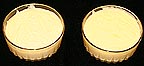These results suggest that cutting the vanilla in half, adding the butter, and increasing the egg yolks to 3 should yield the best results. To test this conclusion I made it as well as one batch with the vanilla cut to 3/4 of the basic recipe. I also added two drops of yellow food color to this one. The goal wasn't to make the pudding look artificially yellow but to counteract the graying effect vanilla has on the pudding's final color.