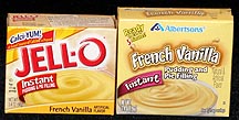 Jell-O French Vanilla pudding was too yellow and edgy from too much vanilla flavoring. Albertson's was too thick and had a sour flavor. It was one of the worst.