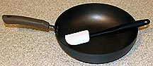 I like using a sauce pan with gently curved sides that have no sharp turns where ingredients can hide. A soft, heat-proof spatula who's curve fits the curve of the pan is also nice.