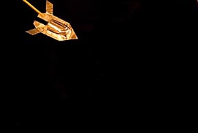 A water scooter is nothing more than a small piece of waxed paper cut in the shape of a rocket with a channel cut into its rear end. Fill a large pan with water, place the scooter at one end and touch a skewer that's had its end dipped in liquid soap into the rear channel and the scooter will shoot forward.